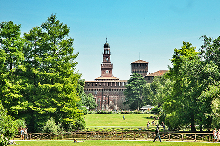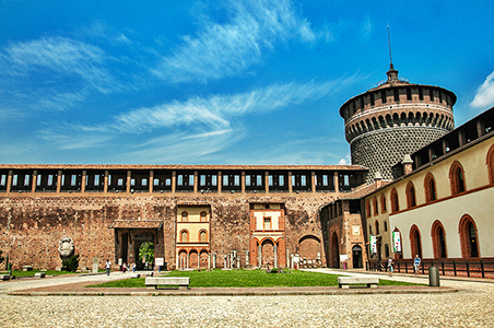 斯福尔扎城堡是米兰最重要的建筑之⼀,是米兰沧桑历史的见证。在14世纪时由斯福尔扎伯爵作为城堡而建,而后成为斯福尔扎家族的住所,整个城堡是方形平面的,有一个大公园,四周围有高墙。现城堡被米兰市政府辟为博物馆,其中有应用艺术和乐曲博物馆、考古博物馆、古代艺术博物馆,他的后门是和平门,是统治者费朗西斯科改造得名的。
