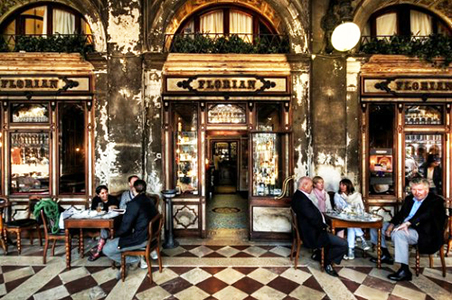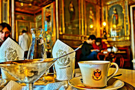 著名的花神咖啡厅,位于圣马可广场,历史非常悠久,约300年。广场上有一大片露天座位,也有很多艺人在演奏,可以在这里聆听悠扬的琴声。咖啡馆装潢古色古香,由于名气太⼤,可能找不到空位,而且价格也略高。
