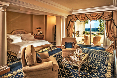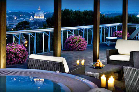 度假酒店的⼤型艺术收藏品包括古董家具、壮观的画作、珍贵的挂毯以及雕塑和古代⼯艺品,被放置在其套房以及酒廊酒吧等公共空间各处展出。度假酒店距离梵蒂冈(Vatican)有3.5公里,距离罗马斗兽场(Coliseum)有25分钟车程,每小时提供一趟往/返威尼托区(Via Veneto)的免费班车。