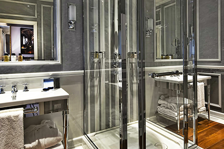 客房内饰由Michele Bonan设计,带有红木苍穹和手⼯制作的布艺床。⼤理石浴室配有1个⼤型玻璃淋浴和浴盆。
