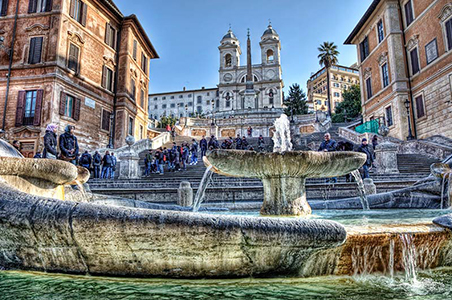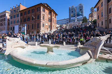 西班牙广场以蒙太圣三⼀教堂为端点,本身没有太多的亮点,但是因《罗马假日》电影中,奥黛丽赫本在广场的西班牙台阶上吃冰淇淋后,这里成了家喻户晓的景点。台阶对面的孔多蒂⼤街虽然窄⼩,你所知的奢侈品牌和⼤牌的旗舰店都在这里,对!所有的都在。甚至宝格丽珠宝起家的店也在这附近。此外,西班牙台阶下面的破船喷泉造型特别,这是彼得贝尼尼设计的。