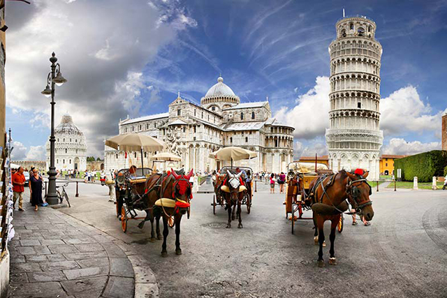 乘车前往著名物理学家伽利略出生地-比萨,参观举世闻名的比萨斜塔。结束后前往魅力水城威尼斯。