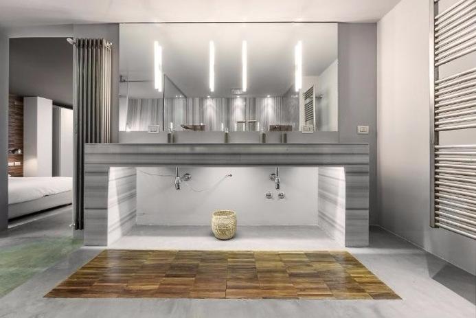 这个特征独具一格的loft公寓采用了极特色的材料和光线设计: 木质, 玻璃,水晶, 树脂以及混凝土. 整个物业中的照明系统均采用的LED节能等, 无论是在天花板, 地板,以及装饰墙面上。