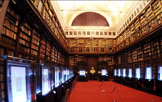 该公寓的转角处便是盎博罗削图书馆(Ambrosiana Library),由主教Borromeo于1609年建立, 也是的珍藏古老版本和首版书籍处, 其画廊, 收藏着达芬奇著名之作大西洋密码(Codice Atlantico)以及众多意大利和荷兰画作的收藏(其中包括波提切利,提香,卡拉瓦乔). 几步之遥是圣塞坡尔克罗(San Sepolcro)教堂, 树立于罗马广场遗址中以及米兰股票交易所所处(Piazza Affari)